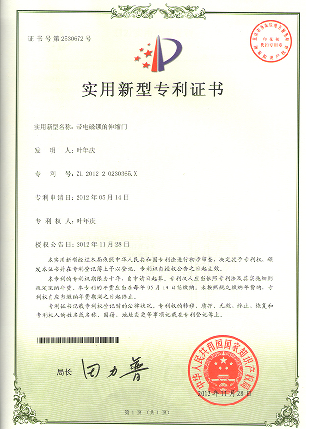 帶電磁鎖的伸縮門